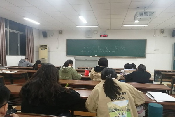 推优入团会议开始,班长杨幸向同学们简单介绍了推优入团的意义和重要性。推优入团候选人依次发言,谈论自己对进入团校学习的认识以及积极向党组织靠拢的决心。经过投票选举确定了本次推优入团的五名人选。