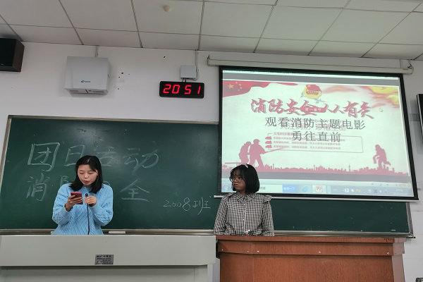 活动开始,吴湘楠简单介绍了此次活动的主题。为了加深同学们对消防事业的了解,全班一起观看了相关影片—《勇往直前》,影片结束后,四位同学和大家分享了自己对该电影以及火灾和消防员的看法,吴湘楠对同学们进行了消防知识20条的普及,并进行了随机问答。最后吴湘楠和朱伟鹏进行了此次的活动总结。