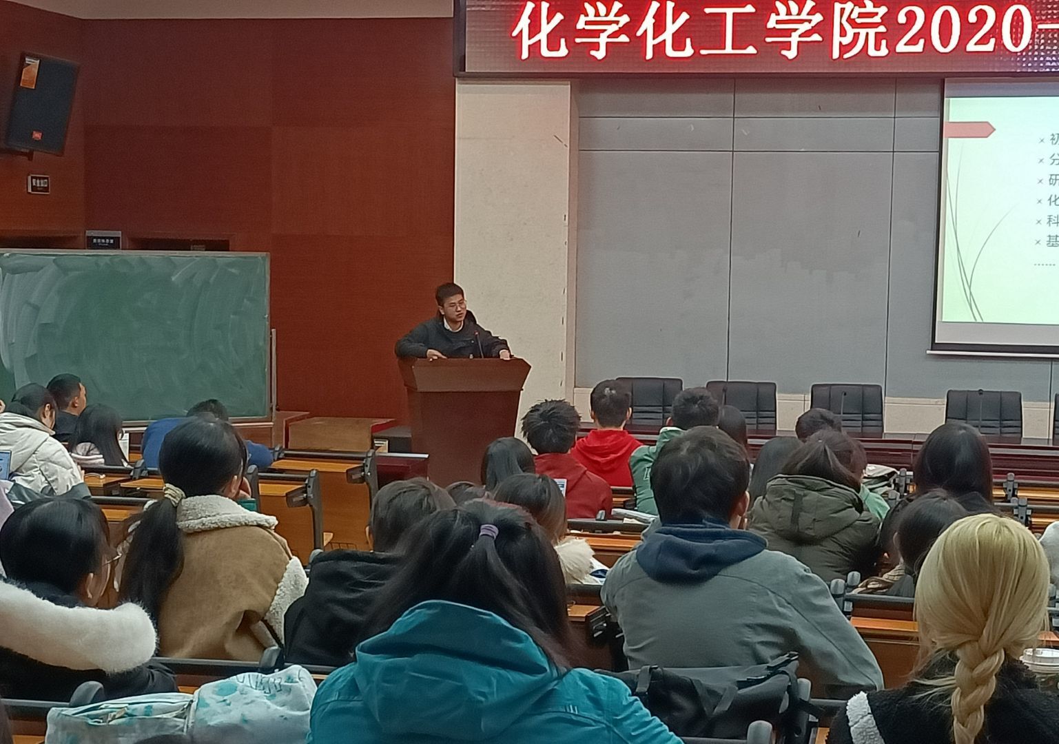 (通讯员 刘湉)11月23日12点30分,万象城awc888团委青年创新创业部在化工院报告厅举办了精勤讲堂之“化”样人生。此次讲堂由2017级应用化学专业的王磊主讲,18级,19级以及20级部分同学参加了此次活动。