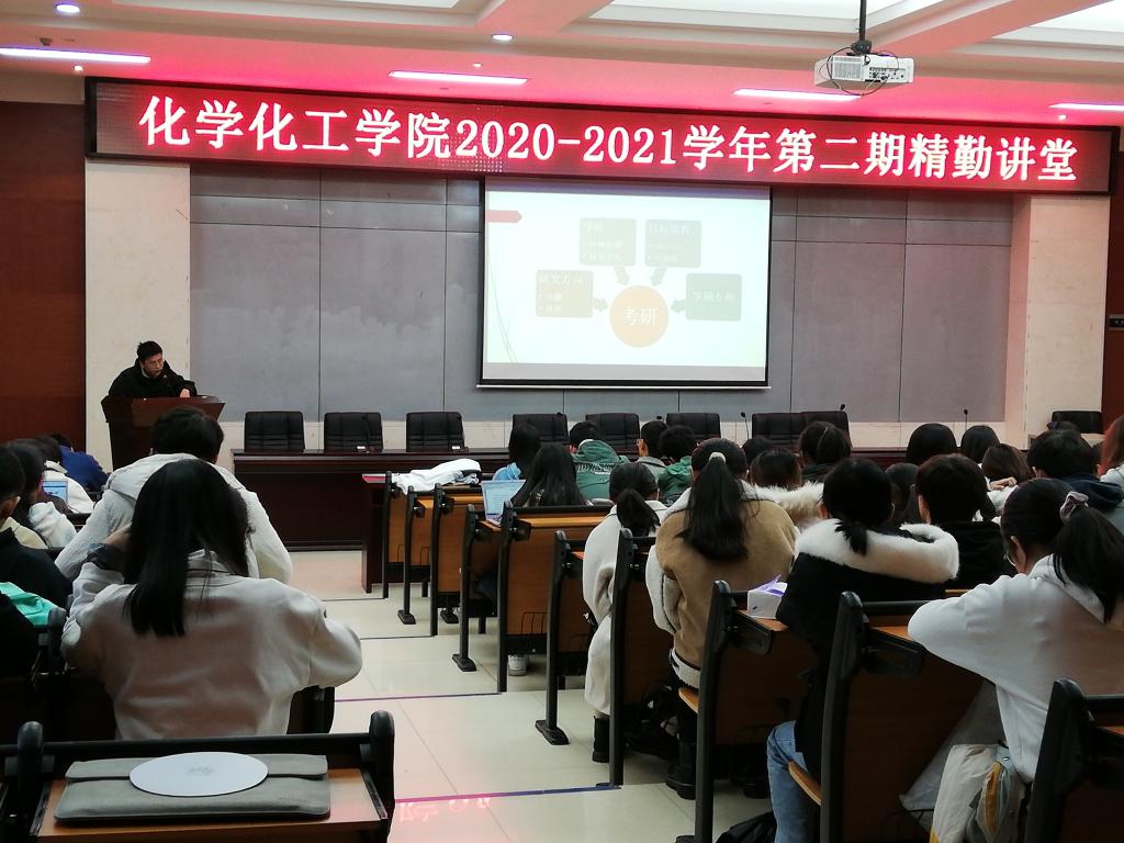 讲堂上,王磊首先向同学们询问,在场有多少人是想要考研的,同学们纷纷举手表示有考研的意愿。围绕着这个话题,王磊从考研的研究方向,目标院校,与导师选择等方面给予同学们许多有益的建议,明确同学们考研的努力方向与考研中的许多注意事项。此次活动也迎来了高潮,同学们认真听讲,积极配合。演讲将近尾声,王磊结合自己的亲身经历为同学们分享有关保研的相关事项,并对本专业的就业前景表达了自己的看法,随后宣告此次精勤讲堂就此结束。
