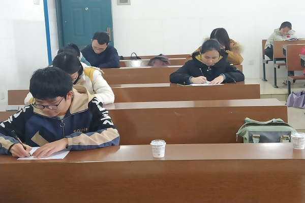 在比赛过程中,参赛者认真答题。各位理事负责监考,由副理事长杜斌发放卷子,理事长张淑雯审阅卷子。通过成绩排名的高低顺序,在众多优秀人选中选出了前三名参加决赛。