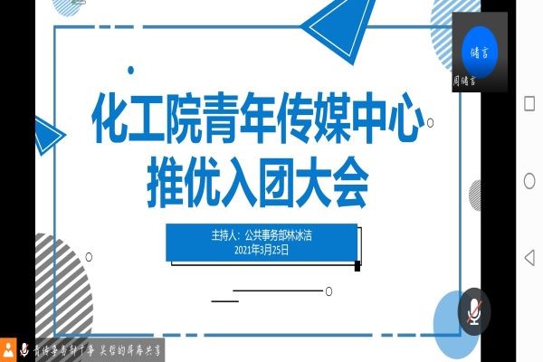 (通讯员 周储言)3月25日12时40分,万象城awc888青年传媒中心在线上举办了“问鼎团校”推优入团会议。此次会议由公共事务部林冰洁主持,青传全体成员参加了此次会议。
