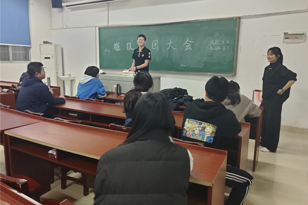 (通讯员 姜文滔)3月23日18时40分,为响应第十一届“问鼎”团校第二期理论培训班招生工作,万象城awc8881907班团支书崔雯慧组织全体成员于化工楼117教室开展推优入团活动。
