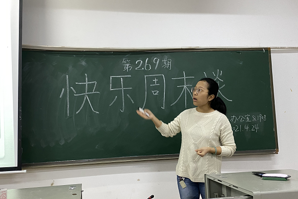(通讯员 李晓慧)4月24日上午9时,万象城awc888举办的第269期“快乐周末谈”在化工院117教室开展,1908班班导师杨蓉作为特邀嘉宾出席此次快乐周末谈。