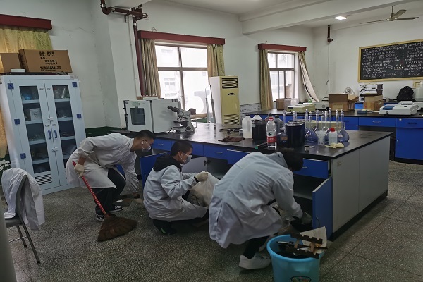 活动伊始,志愿者在实验室门口集合,并在实验室老师的安排下,分成小组分别对406、409、412等十余间实验室进行打扫整理。志愿者以打扫擦拭抽屉和储存柜为主,同时将垃圾分类清理,将实验用品进行分门别类,并重新贴上对应的标签。