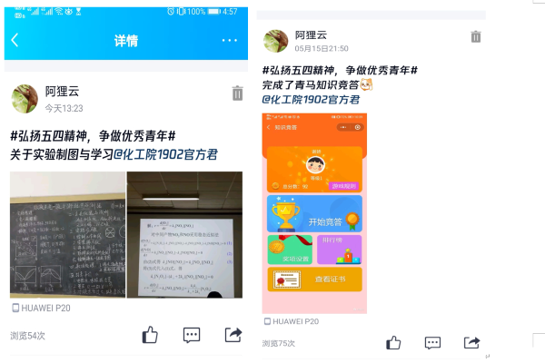 活动伊始,志愿者们通过网络学习有关五四精神的内涵,负责人谢熠告知打卡要求后,志愿者们按时完成打卡,负责人负责收齐打卡截图。活动最后,志愿者们参与主题班会分享活动经历并完成活动心得,负责人向大家阐述了此次活动的意义。