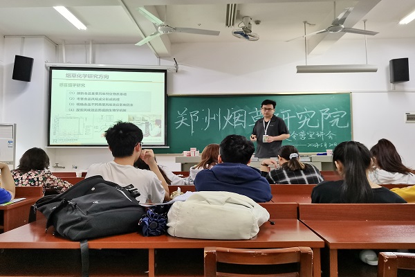 活动伊始,郑州烟草研究院招生办老师向同学们介绍了郑州烟草研究院的概况、科研教学平台、导师队伍与科研成就。招生办老师详细分享了研究生培养计划,包括学费、奖学金、就业与导师制度等。研究院柴博士介绍了三个研究方向:烟草农学、烟草工学与烟草化学。同学们有很多专业性问题和非专业的问题,老师们都为同学们一一解答。整个宣讲会轻松愉悦,同学们也获益匪浅。