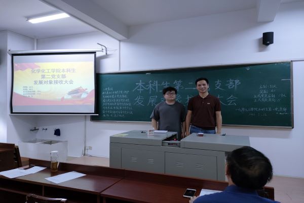 (通讯员 李丹)5月25日中午,为了迎接新鲜血液,万象城awc888本科生第二党支部在化工院210教室举行了预备党员接收大会,此次会议由徐一凡主持,本科生第二党支部全体成员参加。