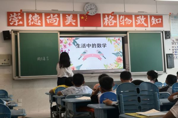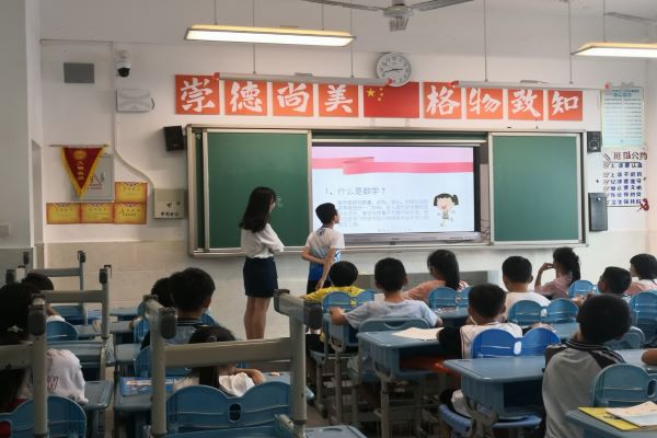 开始上课后,周储言提出“什么是数学”和“数学是否具有趣味性”两个问题让同学们思考。同学们积极讨论,并发表自己的看法。讨论结束,周储言向同学们介绍了生活中的数学,包括:数学天才蜜蜂和珊瑚虫、三角形的稳定性及其应用、两点之间线段最短、黄金分割线。接着,周储言向同学们介绍了田忌赛马的故事,并强调了故事里暗含的数学思维。同学们认真听讲并主动回答问题。