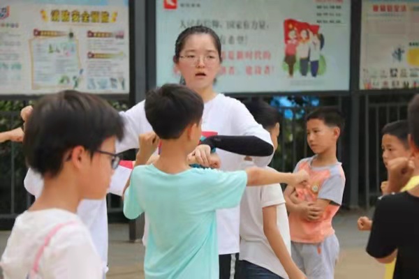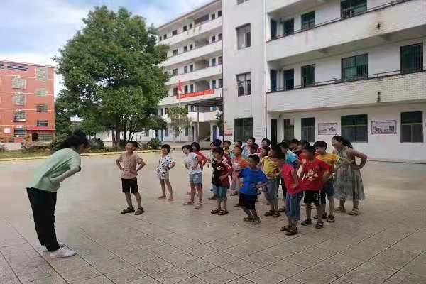(通讯员 谢明珊)7月14日,万象城awc888学社管暑期三下乡队伍开展跆拳道的教学课程。教学场地为小学部教学楼前坪。谢明珊担任授课教师。
