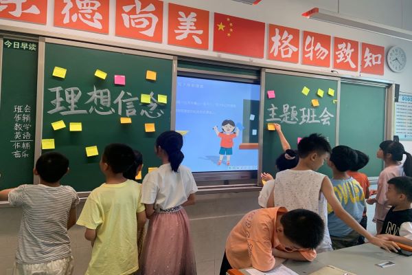 红色论坛活动开始后,欧阳晴向学生们介绍了一些榜样人物的故事,如岳飞精忠报国、范仲淹先忧后乐、鲁迅弃医从文、毛泽东带领红军长征、袁隆平研究杂交水稻等。通过对这些故事和相关作品的学习,学生们初步体会到理想对个人的重要意义。通过朗诵诗歌《放飞理想》,大家加强了对理想信念指引作用的理解。朗诵结束后,张思雨向大家介绍讲解理想的概念内涵以及实现理想的途径和方法。介绍完毕后,大家在便利贴上写下自己的理想并将它们贴在黑板上。欧阳晴让大家分享自己的理想产生的原因以及自己为实现理想需要做出的努力,学生们积极发言并踊跃分享。有的学生想成为医生因为医生能够救死扶伤,有的学生想成为科学家从而为人类发展做出贡献,也有许多想成为教师教书育人的学生。大家的理想多种多样,大多数学生也能积极和大家分享并且认识到实现理想的途径之一就是努力学习。