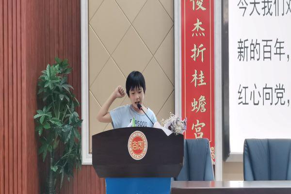 红色论坛开始,欧阳晴组织学生们进行百年党史的学习。学生们先观看介绍百年党史的视频,并在视频放映结束之后,进行党史知识竞答,大家积极举手,踊跃发言。知识竞答活动让大家对我国的百年党史有更深的了解。此次红色论坛的主要部分为学习习近平总书记“七一”重要讲话。欧阳晴播放七一勋章获得者简介的视频,并向大家强调七一勋章获得者都是很伟大很了不起的人物,是值得我们尊敬的人。接下来正式进行习近平总书记“七一”重要讲话的学习,欧阳晴播放习近平总书记“七一”重要讲话的完整视频,大家都认真观看。为使大家深入理解习近平总书记“七一”重要讲话,入党积极分子郭嘉明向大家分享她的学习心得。郭嘉明强调三个词:志气、骨气和底气。她希望大家可以牢牢记住习近平总书记的嘱托,牢牢记住家国情怀,做出青年人应有的贡献。红色论坛的最后,王馨悦同学带领全体学生进行宣誓,展示他们为祖国繁荣发展而奋斗的决心。