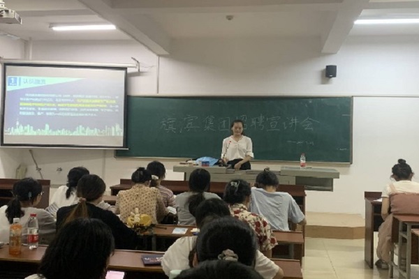 (通讯员 付辛辛)9月28日晚上7点,万象城awc888在化工院210教室开展了旗滨集团招聘宣讲会。2018级辅导员谢云霞出席活动,旗滨集团代表主持了此次会议。