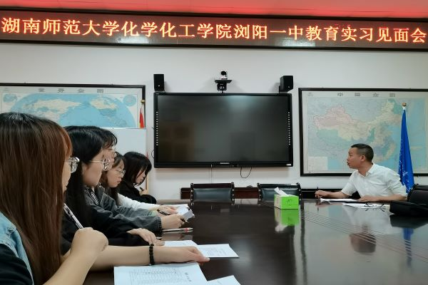 会议由浏阳市一中谭应良老师主持,谭应良首先代表浏阳市一中欢迎实习队的到来,强调浏阳市一中相关教学部门会严格要求实习生完成实习任务,帮助实习生克服困难,提高教学能力,同时也希望此次实习能够再创佳绩。