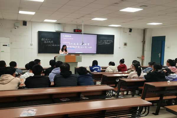 在回望历史部分,秦高阳通过提问的方式,切入主体,让全体同学回想中国共产党的革命史,感受那段红色的风云岁月。活动进行到放眼当下的环节,秦高阳借助热播的央视制作短视频《少年》,加深了全体同学对当今我国的伟大成就的了解。