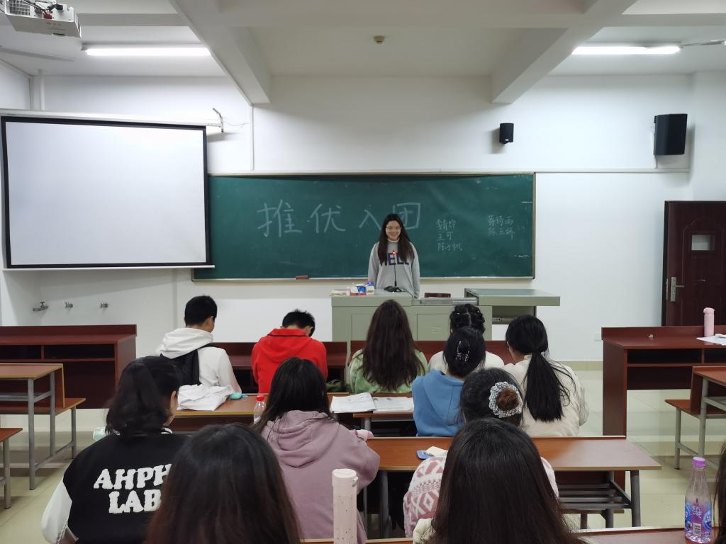会议由2004班班长曾维欣、团支部书记彭玲丽共同举办。曾维欣对推优入团大会举办的意义及评选标准进行讲解,随后王可等七名候选人分别进行竞选演讲。本着公开,公平,公正的原则,全班同学进行不记名投票,选出五位同学参与“问鼎团校”的学习。