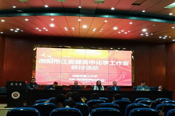 16时30分,浏阳各校化学教师代表及实习队成员进行集体合影,随后在报告厅开展研讨活动。浏阳市第三中学副校长刘朝柏致辞,对参会人员表示欢迎,并表示该校重视教研活动和对青年教师的培养。