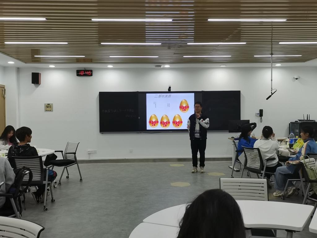 会议开始,青传负责人黄贤帅对新加入的干事表示欢迎。随后,各部门成员进行自我介绍。并且青传全体成员共同参与了“听歌识曲”“你画我猜”等趣味游戏。最后,各部门干事进行了才艺表演。
