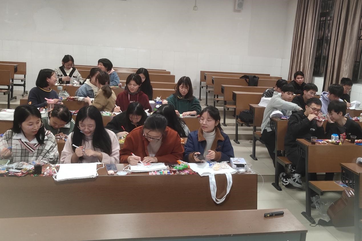此次活动共分为四个环节。在第一环节趣味问答中,通过你问我答的模式,男女生共同回忆了童年动画片的经典片段。在盲盒抽奖环节,男生们都获得了精美的奥特曼周边。在DIY手工环节,大家发挥想象,大显身手,乐在其中。最后,易伟杰同学为大家带来了精彩的吉他弹唱《七里香》。