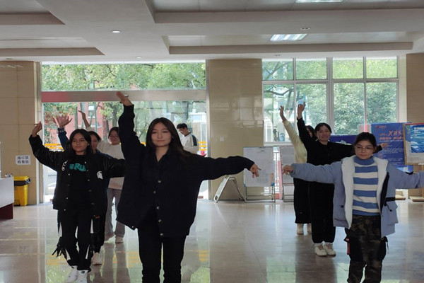 活动开始前文体部所有成员一同布置好场地,干事邰佳琳引导已到学生候场并为其安排上场次序。各个节目展示过后,由各位老师以及文体部第一负责人陈韵竹评审并提出改进意见,文体部第二负责人邱星恒进行设备调试并为下一个节目的上场做好准备工作。其中新疆舞由许多来自新疆、西藏的女同学一同演出,充分展示了少数民族舞蹈的魅力!