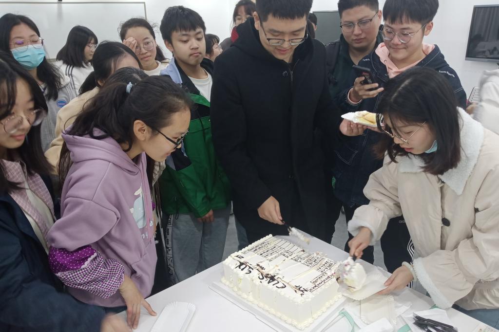 活动伊始,朱伟涛在屏幕上播放了男生寝室拍摄的vlog以活跃现场气氛。随后,由朱芸菲和张泰源一同切分带有班服图案的班级蛋糕,班委向班级成员分发零食饮料并组织同学参加各个团体的桌游活动。最后,全班一同参与“真心话大冒险”游戏,同学们展示才艺,同时也收获笑声。
