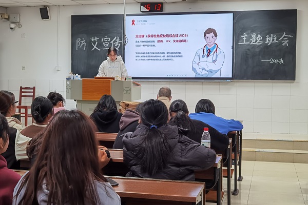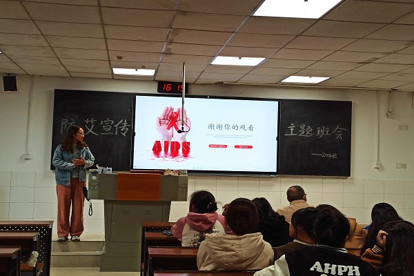 班会内容主要围绕2021年国家防艾宣传主题“生命至上,终结艾滋,健康平等”展开,过程中曾维欣介绍了国家防艾宣传内容和艾滋病的起源、病症、传染途径及预防措施,播放了预防艾滋病的相关视频,以引起同学们的关注和重视。在团支书彭玲丽介绍长沙艾滋病检测相关事宜中结束此次活动。