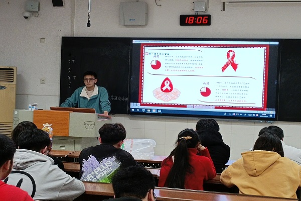 此次会议由观看防艾视频展开,引起同学的关注,结合PPT班明金介绍了艾滋病的历史,传播途径及预防方式等内容,同时倡导在日常生活中要平等对待艾滋病患者,给予他们帮助和关怀。最后班明金以知识竞答的方式结束了此次班会。