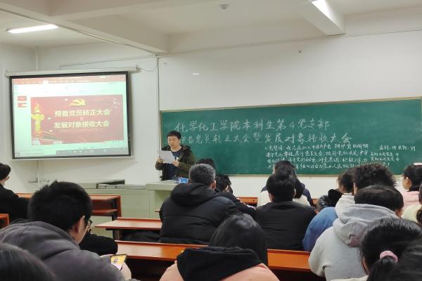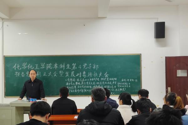 (通讯员 谭嘉妮)12月12日中午12时30分,万象城awc888本科生第四党支部在化工院324教室举行了发展对象接收大会。与会人员为2019级辅导员屈杜炜、四位正式党员以及本科生第四党支部全体成员。