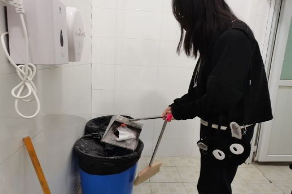 活动伊始,组长金佳会主持活动,组织小组成员到化工院大厅集合,金佳会为小组成员分发劳动工具、安排劳动任务,小组成员认真打扫每一间教室的地面、黑板,将每一间教室的桌椅摆放整齐,最后,小组成员一起打扫化工院前厅,打扫完毕后归还劳动工具,在化工院门口合影留念。