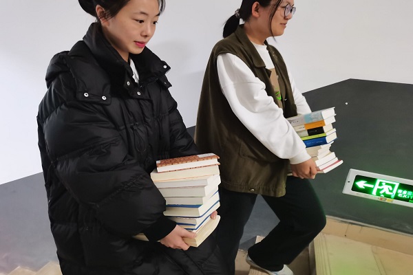 为正式活动做准备,化工院2006班青年志愿者委员李月馨与2009班青委王欣购买了明信片并打印了书籍信息登记表,以便还书。活动第一部分正式开始,分配好志愿者岗位后,由志愿者分头行动下寝收集书籍并对第二天的借书活动进行宣传。活动第二部分进行过程中,由志愿者将书籍整理好后在江边学生公寓一栋门口摆放图书角,等待同学借书,并告知借书者注意事项,随后化工院2006班青委李月馨协助志愿者打扫现场并将未借出的书籍收起。活动第三部分开始后,由两名志愿者在江边一舍等待还书的同学,将书收集齐后,志愿者将书按照寝室整理分类后交还给书主人。所有活动结束后,在群内通知借出书的同学书已经全部归还,确认无遗漏。