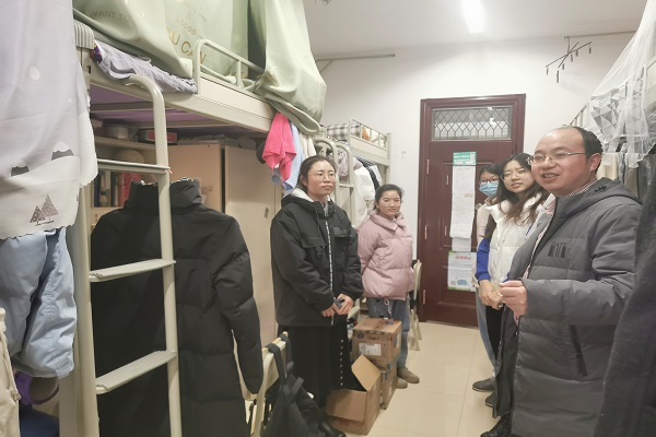 曾佑林老师首先来到男生寝室,在男生寝室时,曾佑林老师询问了同学们的日常生活及学习情况,提出要养成早睡早起的好习惯,抓好学习,并为同学们解答了一些关于考研、保研相关的问题。随后,曾佑林老师又来到长塘山女生宿舍,他首先对女生宿舍的卫生表示肯定,后来又和同学们交流了一些学习上的心得,告诉同学们要维护好与寝室同学的关系,并鼓励同学们要努力学习,在考研的道路上砥砺前行。