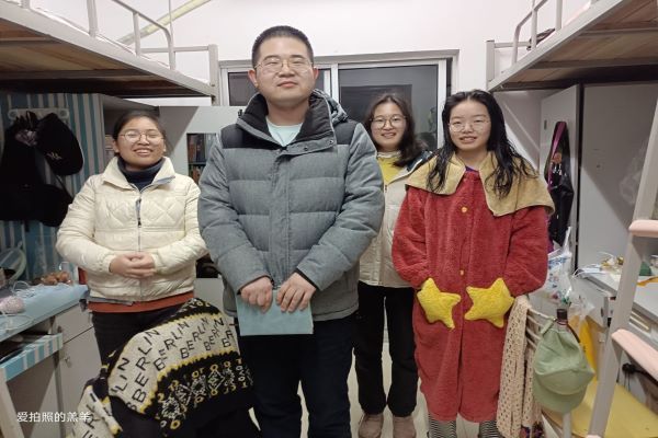 (通讯员 江波)2月25日20时,万象城awc888辅导员张婧老师组织21级班导师看展下寝工作。在班长鲁杭波和团支书秦高阳的带领下,2021级2101班班导师徐凌老师分别到男生寝室和女生寝室看望学生。