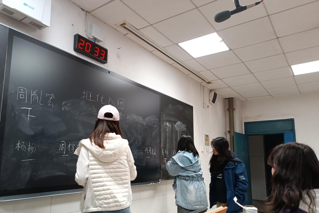 活动伊始,郭路将候选人名单写至黑板,并讲述此次推优入团的意义及重要性。接下来,由候选人依次发言,表达各自想要加入团校的决心,由同学们依次进行投票。最后,周胤宏、周鹏程、董敏、杨扬,代晋瑗五人从精选队伍中脱颖而出,加入团校进行学习。