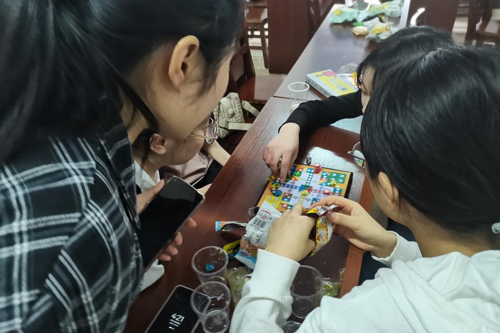 活动伊始,班级同学在化工院教室开展了狼人杀、打牌、飞行棋等一系列促进班级同学友谊的活动,同学们积极地参与每一个游戏。在大家的欢声笑语中,韦彩琳组织了抽奖活动,并设立一等奖2名,二等奖3名,三等奖5名和参与奖,同时班里的男生准备了惊喜,为女生们购置蛋糕和零食。游戏结束后,班级同学分头行动前往火锅店进行聚餐,度过了充实且欢乐的一天。