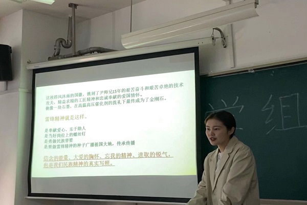 此次活动围绕学习雷锋精神展开。欧阳唯一以化工院优秀校友尹彦征发明红瓷器为例,启发团学组织成员作为化工院的学生干部,要做好岗位上的螺丝钉,乐于奉献、勇于担当,要结合自己专业所学,勇做民族脊梁。欧阳唯一讲述了自己大学以来学习和工作中的故事,提出新时代青年要树立终身学习的意识,要清楚规划自己的人生。活动最后,欧阳唯一阐述了对“团结赤子心,委以青云志”的理解,表示团学组织的各个部门应该团结互助,共同交流,开展具有化工院特色的主题活动,做好引领组织思想,建设校园文化的工作。