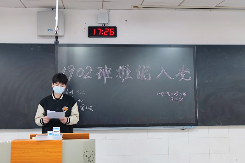 活动伊始,1902班团支书桂甜甜发表讲话,并介绍了此次推优入党的候选人,他们分别是桂甜甜、邹馨璇、徐新宇、李春杰、周美序五位同学。这五位同学分别进行了发言,发言结束后,由支部成员随机提问,再由班级36位成员进行了投票。