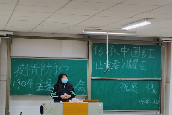 活动开始,徐鹏菲讲述了长沙确诊病例的活动轨迹,提醒同学们不要前往疫情管控区和封控区,做到非必要不离校,向强调同学们在公共区域要佩戴好口罩,做好个人防护,并时刻关注健康码的变化,若有变黄码或者红码的情况需要及时报告,徐鹏菲还向同学们宣传了近期抗疫的典型事迹。
