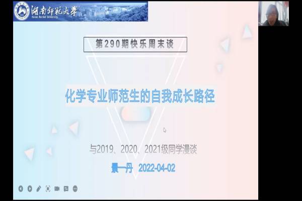 在此次线上活动中,景一丹主要介绍了化学专业师范生的自我成长路径。景一丹提出,作为一名化学师范生,会经历从化学专业师范生到课程与教学论的研究生再到教育学的在职博士生的转变,在成长过程中,学生可以选择参加挑战杯创业大赛,撰写调查研究论文,以及参与到化学与社会社团中,在学习知识的同时,丰富自己的沟通交流能力以及相应的实践技能。