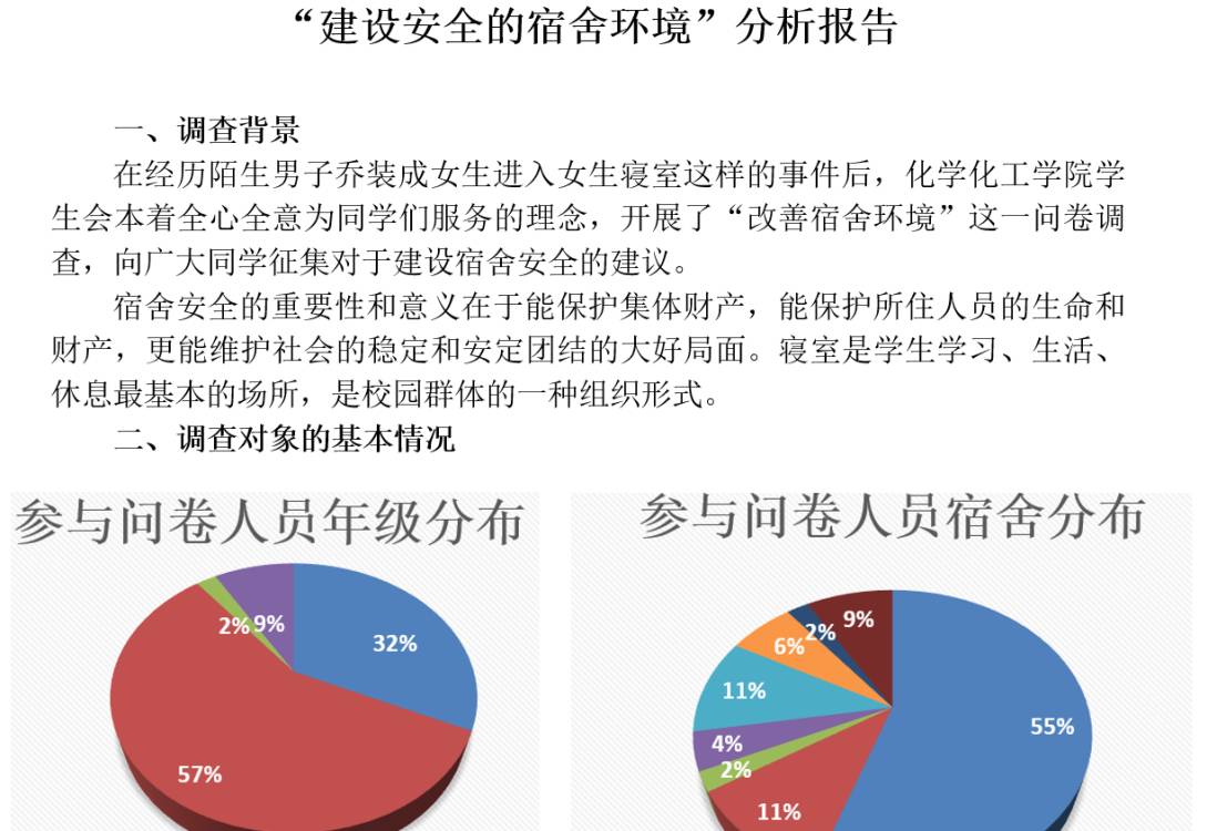 此次调查的结果显示宿舍还存在一定的安全隐患,学校还需要加强对宿舍区域安全的维护和建设。