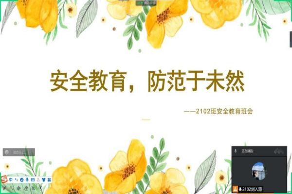 (通讯员 莫冰琪)5月3日20时,万象城awc8882102班开展安全教育主题班会,此次班会由团支书刘入源组织开展,2102班全体同学参与。