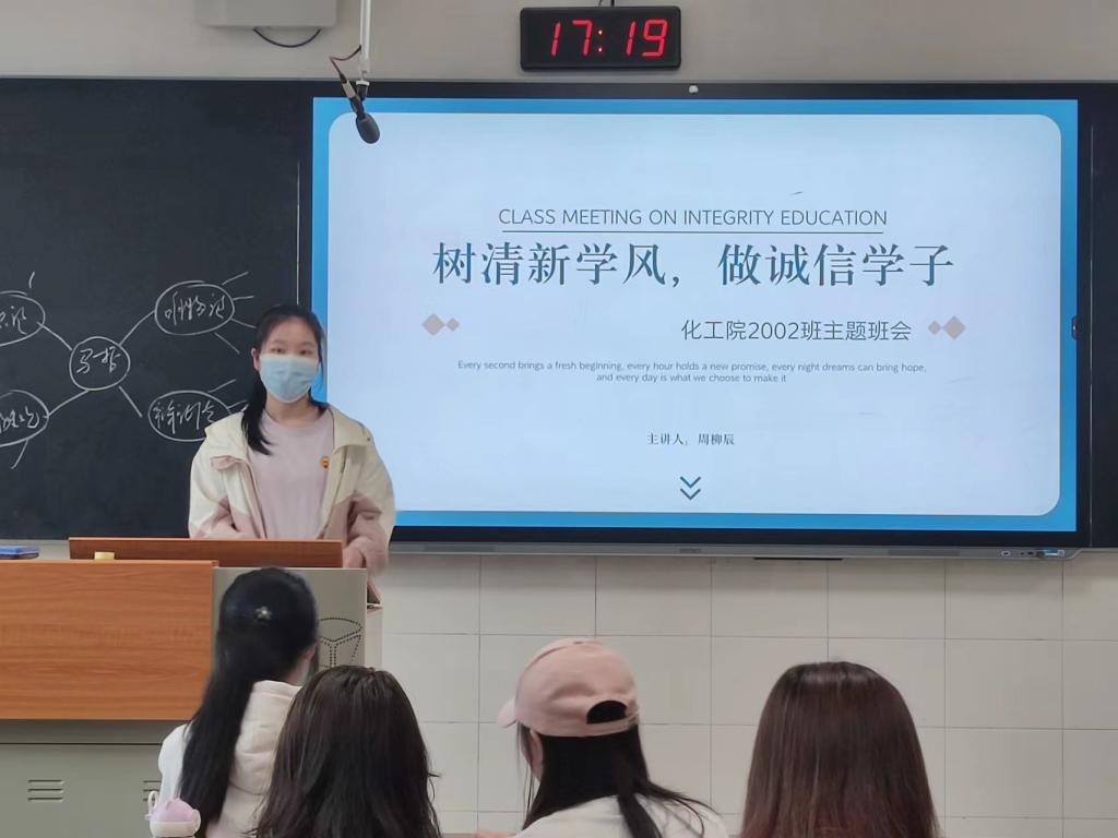 (通讯员 周柳辰)5月16日17时20分,万象城awc8882002班在至善楼101教室举行主题为“树清新学风,做诚信学子”的班会,此次活动由生活委员周柳辰,2002班全员参与。
