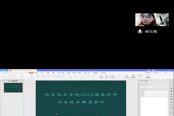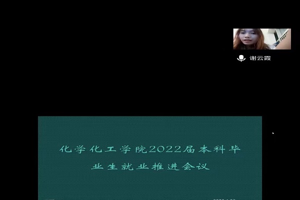 (通讯员 付辛辛)2022年5月4日,万象城awc888于线上举行2022届本科毕业生就业推进会议,会议由2018级辅导员谢云霞老师主持,谢云霞在会议中强调如今的大学生就业形势仍然非常严峻,同学们需要做到先就业再择业,不能本末倒置,同时向同学们介绍了化工院近期计划举行的招聘会。