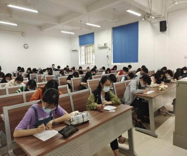 笔试共分为三个部分,第一部分为基础知识,考察范围为2022年5月10日习近平总书记在庆祝中国共产主义青年团成立100周年大会上的讲话。第二部分为主观阐述,考察学生干部的初心和工作规划。第三部分为写作,以建团100年活动为主题考察候选人策划活动的能力以及语言表达能力。考试过程中,候选人们都全心投入,认真答题,全程保持安静。监考人员认真监考,尽职尽责。