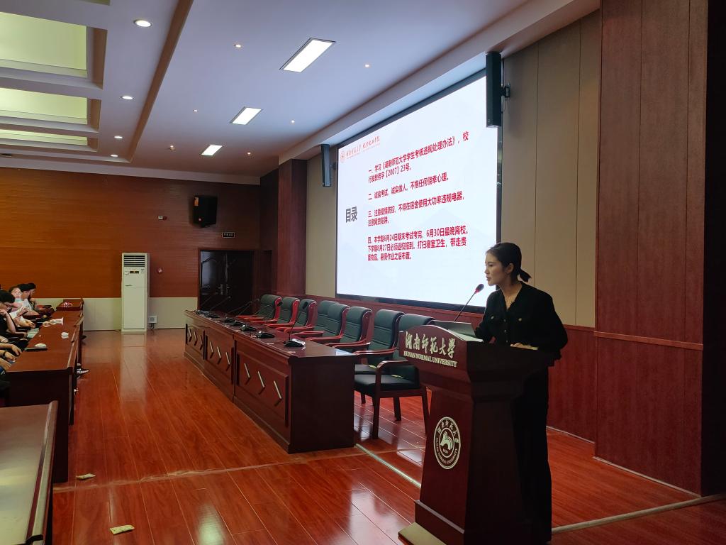 此次会议旨在强化同学们注意健康、注意安全思想,号召同学们认真复习、诚信应考,为这一学期画上圆满的句号。