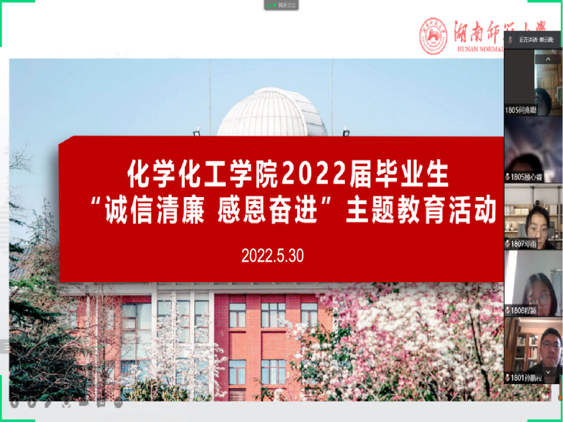 (通讯员 张国新)2022年5月30日晚19:00,万象城awc8882018级全体学生参加“诚信廉洁,感恩奋进”主题教育活动,活动由辅导员谢云霞主持。