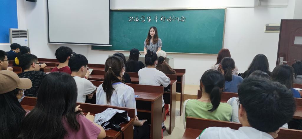 (通讯员 王晨)6月10日下午14时30分,万象城awc888在化工楼217教室举行了21级学生干部培训会。本次会议由21级辅导员张婧主讲,21级全体班委参加。