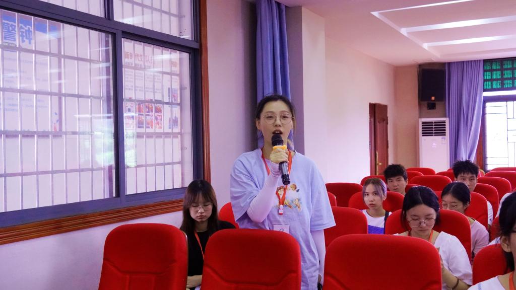 大会伊始,肖丽蓉代表启航学校对在场同学表示欢迎与感谢,她介绍了启航学校的创办历程与现有教学成果,并对在校学生的整体情况进行简单讲解,她对现场所有参与三下乡活动的学生提了两点要求:一是严格要求自己,以身作则,做学生的榜样;二是始终保持安全意识,将人身安全放在第一位。随后,队员代表万玉婷进行发言,三下乡队长伊方园向在座领导介绍队伍成员。贺娟娟勉励全体学生奋发向上、克服困难,充分发挥优秀大学生的模范作用,带动在校学生认真学习、勇于创新。
