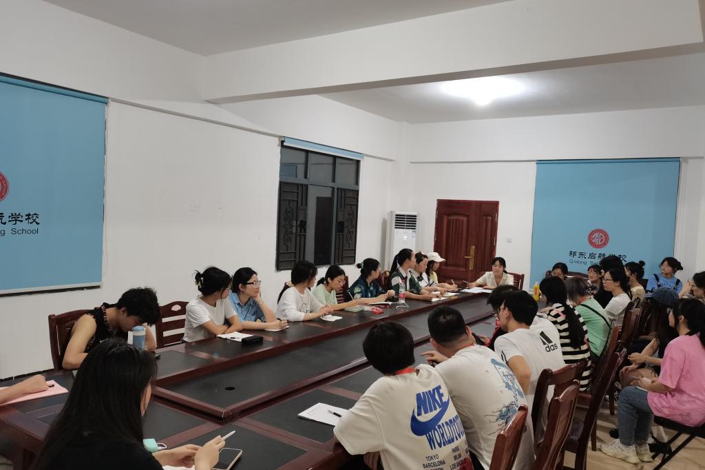 7月28日20时,全体成员于启航学校少年宫201教务处参加工作安排会,队长伊方园在与校方交流后,针对学校情况,结合各个年级不同的教学需求,从教学安排、生活纪律两个方面对此次活动的支教内容进行了细致的安排,并确认了调研小组的分配及各小组调研选题。会议最后,伊方园选出三名宣讲会的负责人,并与三位负责人商议此次三下乡宣讲会主题,为后期工作做准备。