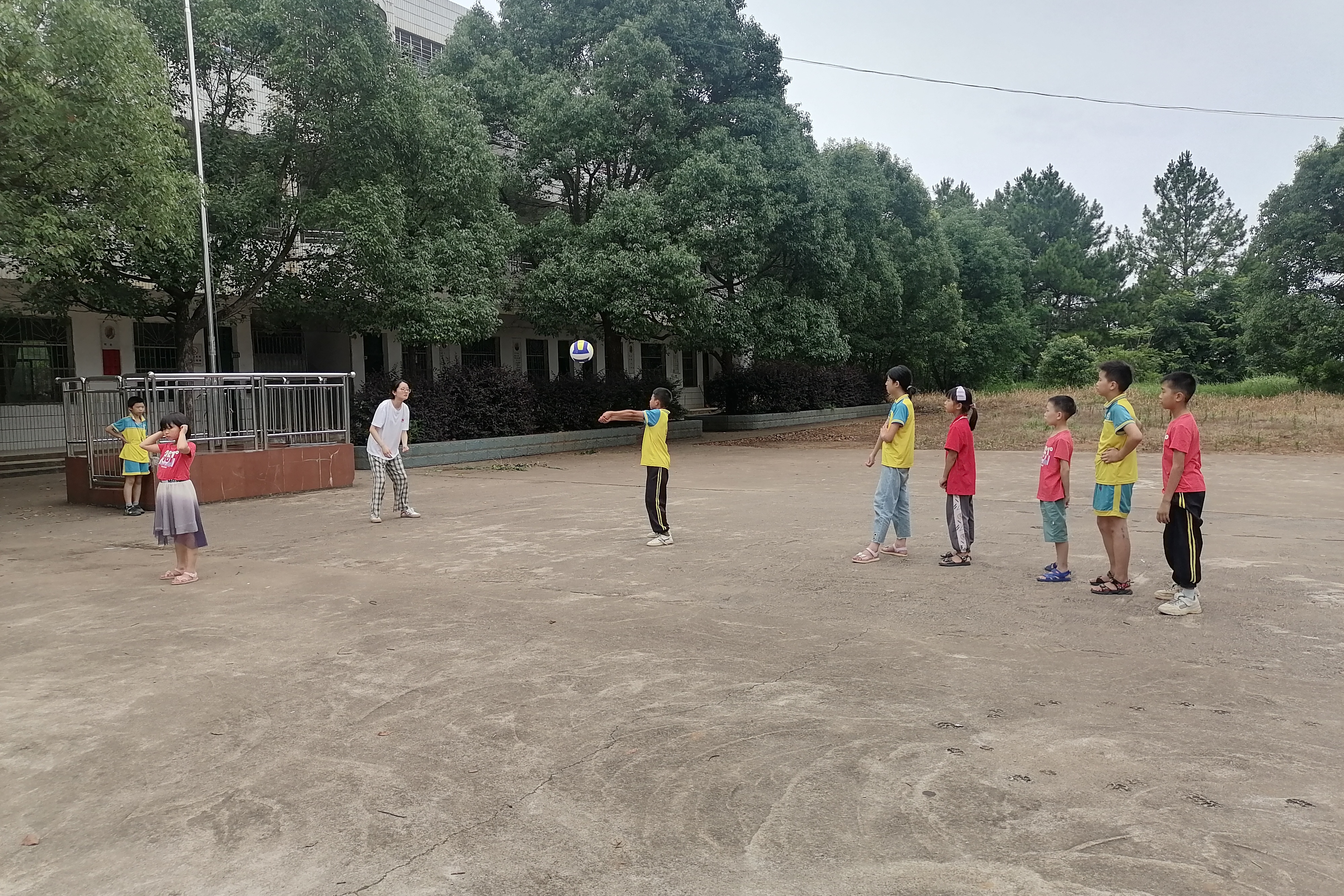 (通讯员 陈玉娇)7月5日14时30分,为了丰富体育课程内容。万象城awc888“红色基因”团队成员陈玉娇给郴州市桂阳苦志育才学校的学生开展了气排球课程。