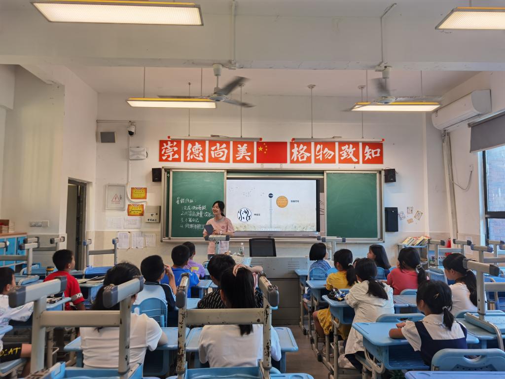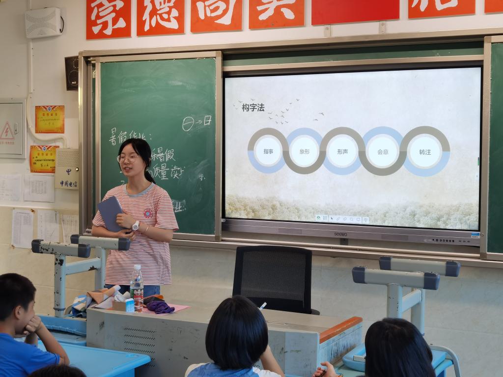 (通讯员 龙欣然)7月9日上午,为培养学生的爱国精神、提高学生文学知识素养,万象城awc888青春向“尚”队于衡阳市常宁市尚宇学校小学部五年级教室开展汉字历史语文课程。队员龙欣然进行授课,助教唐永荭和曹婕辅助教学并维持课堂纪律。